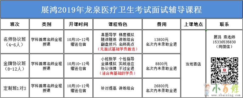 2019年龙泉医疗卫生招聘面试培训课程名额所剩不多,小班教学,名师全程授课,全真模拟,一对一点评,岗位1比1招生,名次内未录取全退,课程赠送食宿!!报名咨询燕老师15336535830同微信www.xbaixing.com小百姓网